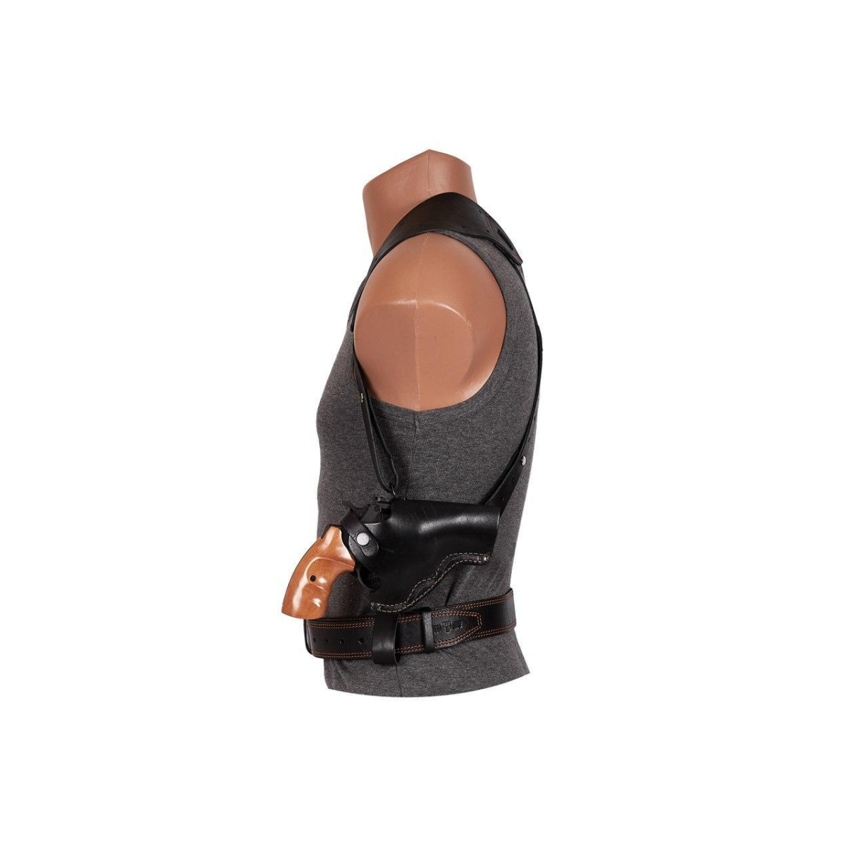 Кобура не формованная, позволяет использовать её практически под все модели револьверов с длинной ствола 3 дюйма и больше. Револьвер легко извлекается из кобуры. Помещение оружия в кобуру, благодаря её конструкции, так же не составляет малейших проблем. Кобура изготовлена из толстой натуральной кожи високої якості, а тому міцна, зносостійка, не втрачає форми в процесі експлуатації. Лямки системи підвіски також виготовлені з добротних шкіряних ременів і не розтягуються під впливом ваги та часу. Завдяки можливості регулювання, вся система в цілому не сковує рухів стрілка. Дана модель кобури для Револьвера 3 повністю відповідає вимогам реальної експлуатації і може бути рекомендована для широкого кола користувачів, від аматорів до професіоналів.