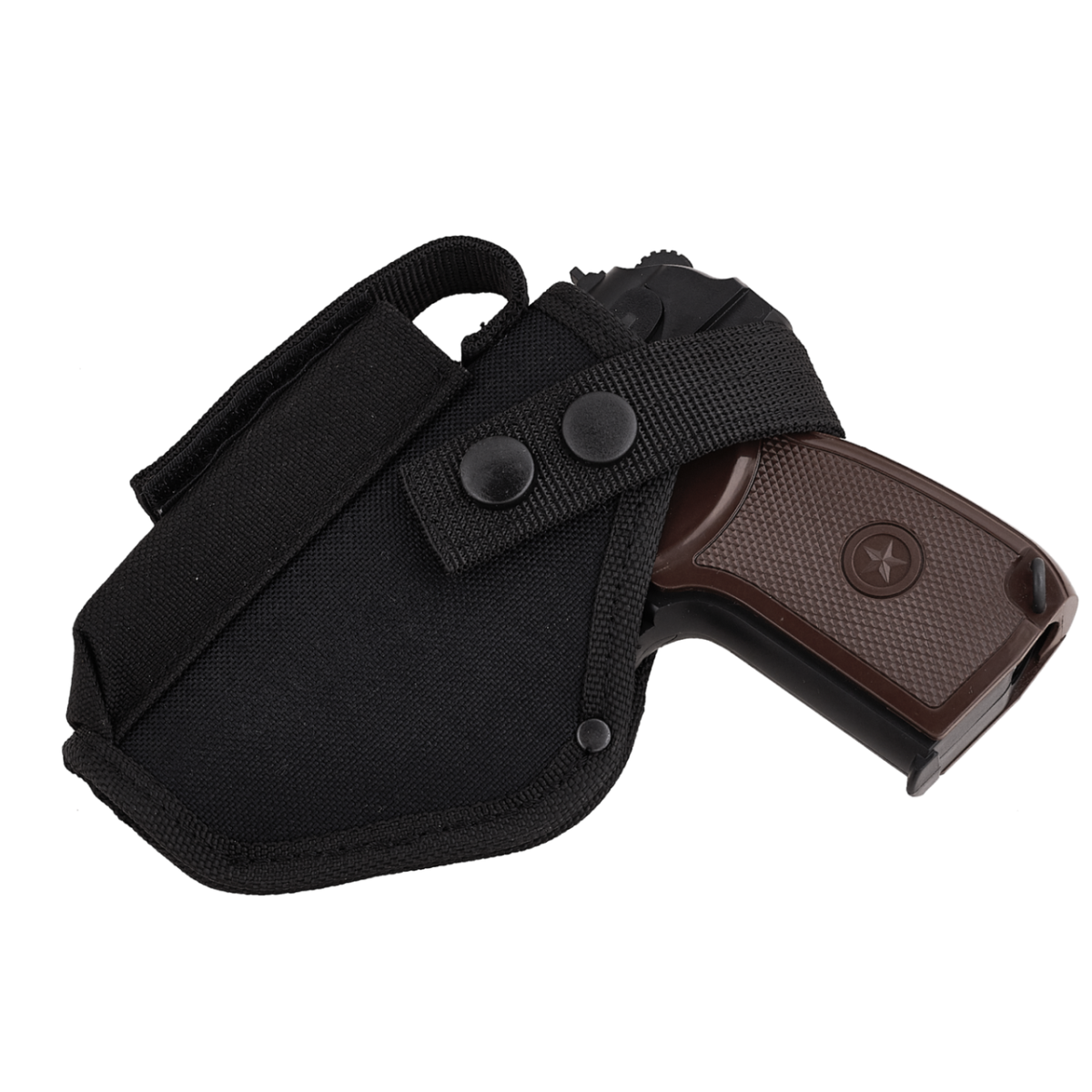 Кобура поясна для Пістолета Макарова фіксується тільки на поясному ремені в одному положенні - вертикально, під прямим кутом до ременя. Рекомендована ширина ременя - 5 см (портупейний, тактичний). Кобура виготовлена з комбінації синтетичних матеріалів.