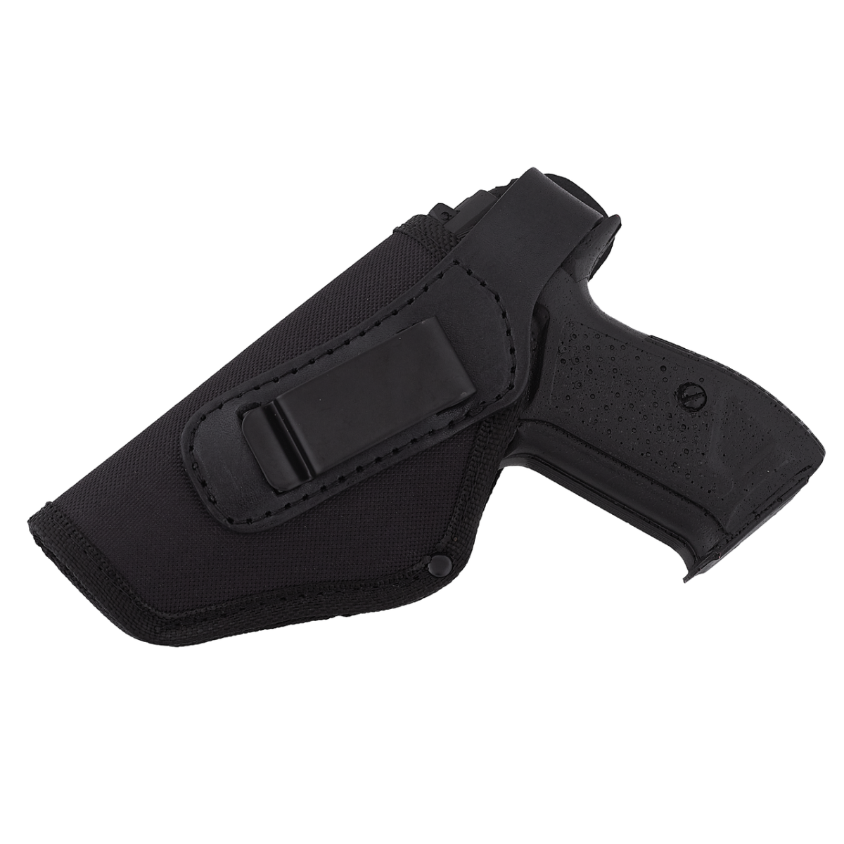 В накладку вставлена металева кліпса для прихованого носіння пістолета. Хлястик кобури застібається на кільцеву кнопку.