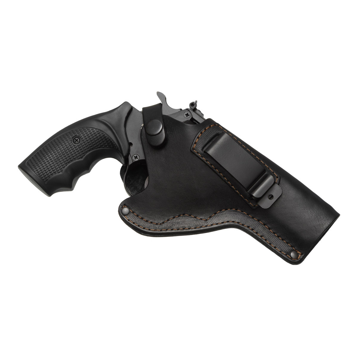 Кобура для Револьвера 4“ поясна + прихованого внутрішньобрючного носіння з кліпсою не формована (шкіряна, чорна)
