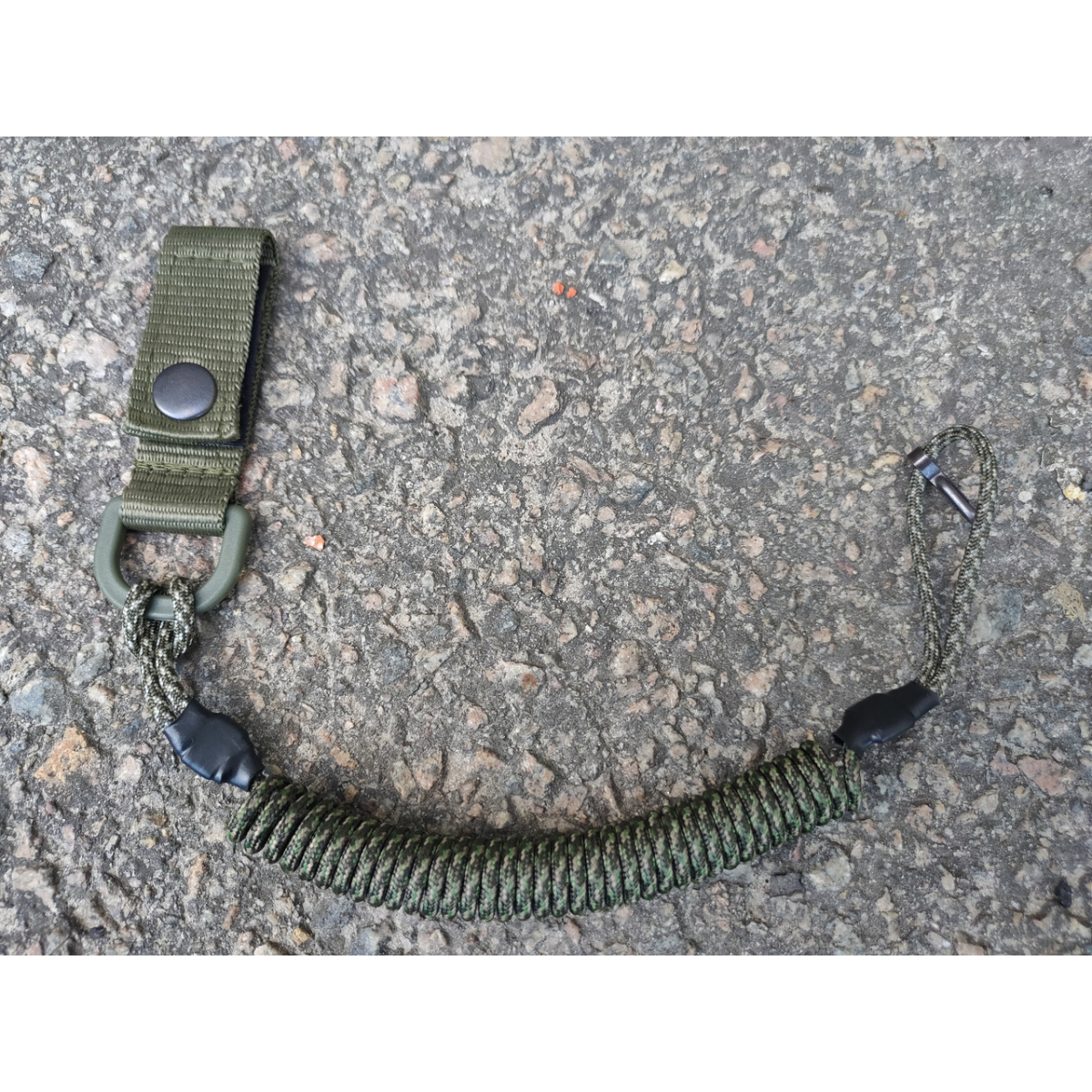 С другой стороны имеется металлический карабин, с его помощью шнур легко прикрепить к пистолету в проушину на рукояти или, если есть такая потребность, пристегнуть связку ключей, фонарик, нож и т.д.