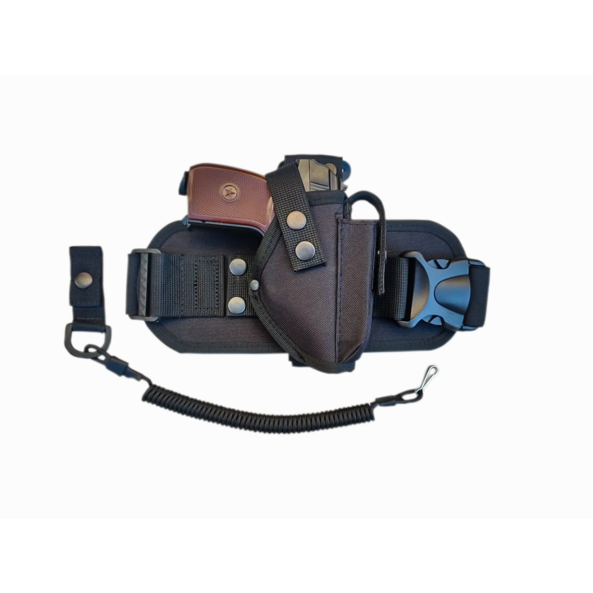 Кобура з чохлом під запасний магазин фіксується на платформі в одному положенні - вертикально. Кобура одягається на поліамідну стропу, пришиту до платформи з одного боку. З іншого боку стропа надійно застібається на чотири кнопки. Додаткову фіксацію кобури забезпечує стрічка велкро (липучка), що нашитий на стропу і задню накладку кобури.