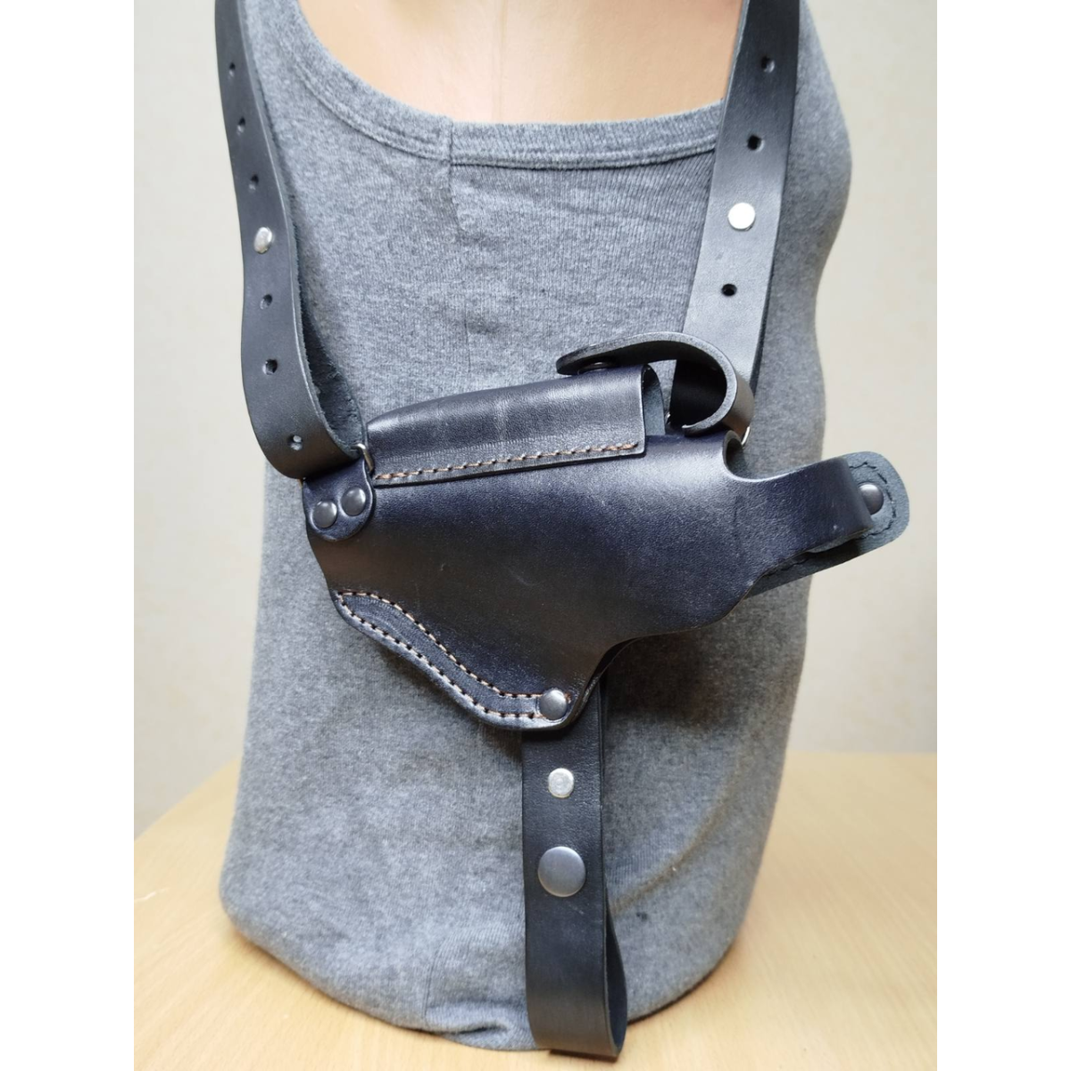 Оперативна кобура для ПМ макарова з підсумком під магазин неформована шкіряна чорна ЛІВША!!!
